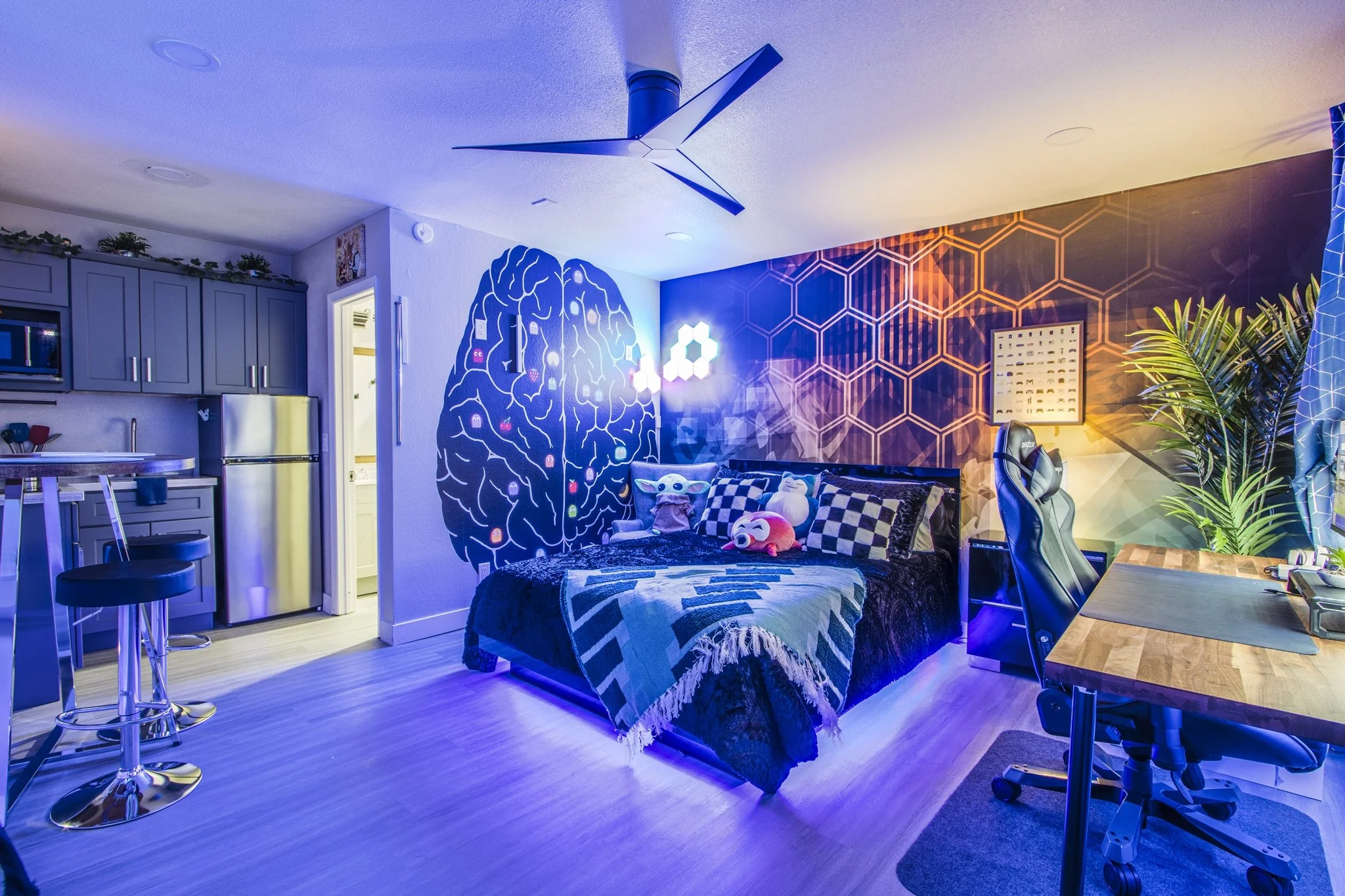 Welcome to our stylish and tech-inspired haven in the vibrant Las Vegas Arts District. Designed for the creatives and the professionals seeking a seamless work-play balance, our space offers a spacious desk that promotes productivity and a clear mindset. Get down to business, tackle important tasks, or let your creativity flow in this dedicated workspace.